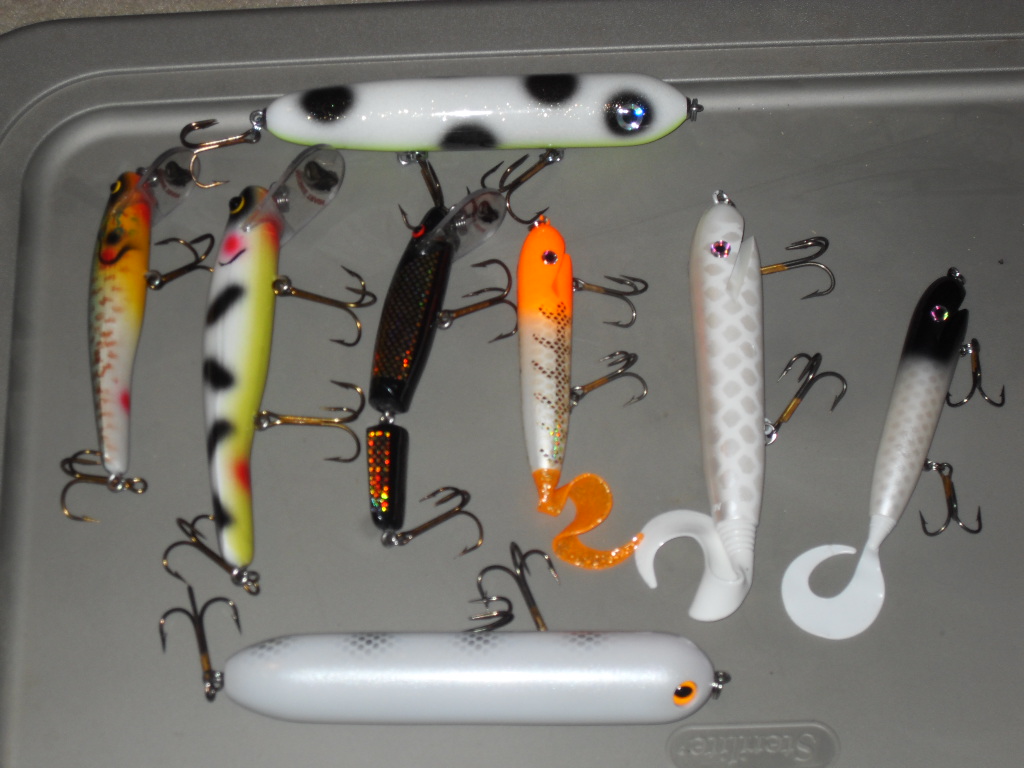 | I made purchases that I could only find at the show. I finally pulled the trigger on ordering a pounder rod through Franks Custom Rods. It will be on a Calstar 9' heavy blank. Along with some show color custom pounders,a couple twitch baits from Tyler's Basement Creations,a Badwater glide bait and a Musky Train crank bait. And way to many baits purchased at the swap,lots of great deals there. Most of all I'm looking forward to using the rod I ordered from Frank |
