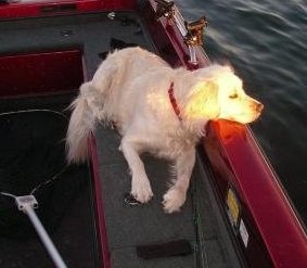 Location: Minneapolis, MN | I was wondering if any of you guys bring your dogs in the boat with fishing. I have a 1 year old English Setter that I brought out walleye fishing over opener and she did surprisingly well. I would have said she had no chance before last weekend making it a couple hours in the boat but now am thinking about giving it a shot. Any advice for having a dog in the boat? |