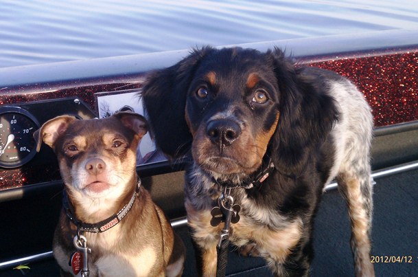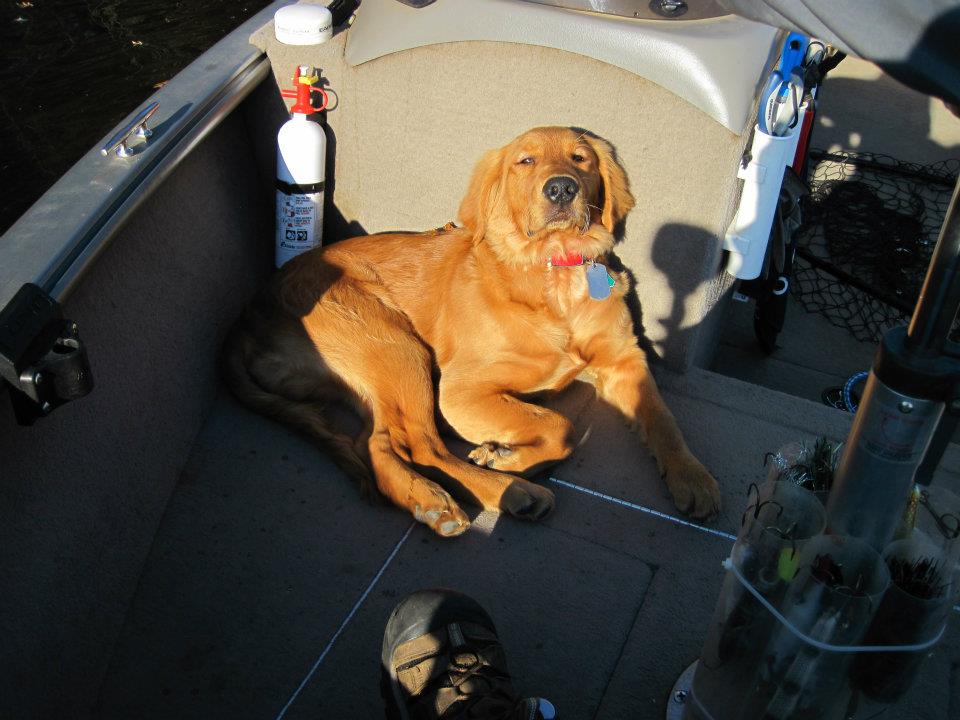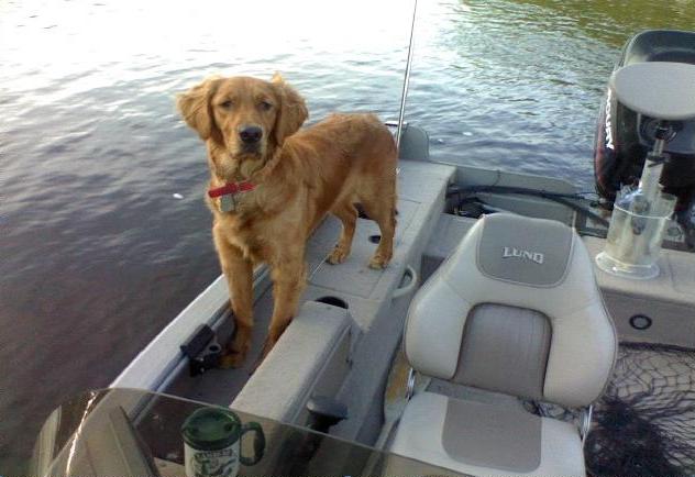 Location: Madison, WI | I am currently training my 6 month old brittany, Charlie to ride with me while i fish. So far so good as he has yet to get hooked, jump overboard, or pee in the boat. He is very restless though and feels he always has to be at my feet, sometimes laying on the trolling motor pedal making me physically move him time and time again but he is just a pup. He did eat some coontail last trip out and puked on the floor but what do you do, i love having him along! |