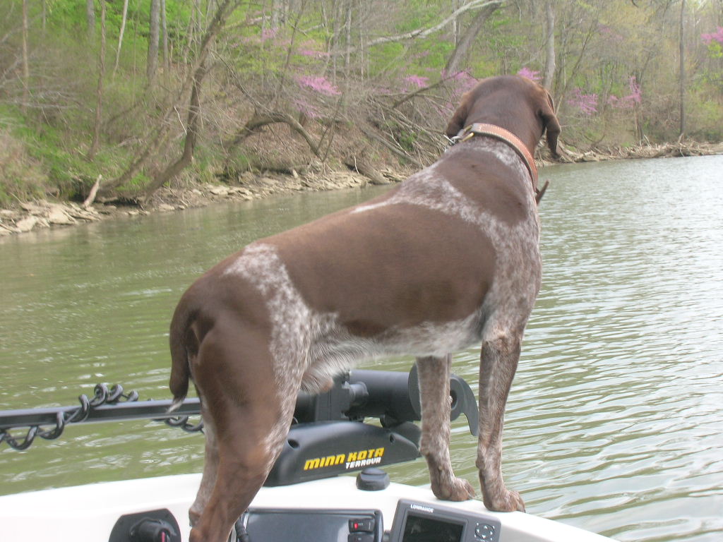 | Love having the pup in the boat. Started my female Brittany out last April when she was 3.5 months old. First time in a boat, first spot, first 2 minutes she falls in the water having never swam before. The look on her face when she popped back up was priceless. Needless to say she learned how to swim quick!