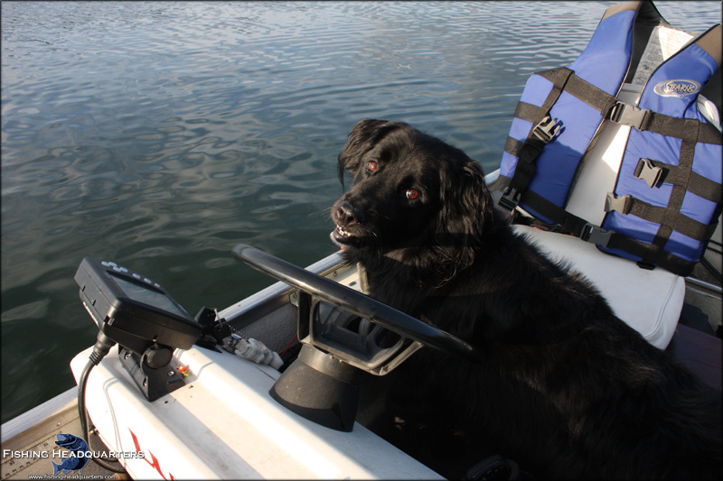 | My lab Cooper loves being in the boat. It took a few trips for him to get used to the rules. I started out with him leashed around a pedestal until he got used to it. He knows not to jump overboard until I say it’s OK – He learned that lesson the hard way after a high speed water skipping dive when going after a close flying duck. He loves being in the water and I’ll swim him hard now and then to keep him relaxed in the boat. We’re heading up north for the first time this weekend and I whispered his favorite words the other day - “wannagotohayward” now he’s just as excited as me. He has a tradition of licking every fish; my old lab would eat bluegills alive. Take your pup with, the pup will love it, and you’ll enjoy it more too.