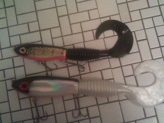 Last fall I made some fronts (late stage prototypes) for the Michigan Muskie shop and he had them with 11" Boneyard tails until I made a silicone mold and finished up my tail. Since then I have made a larger custom spring for the back and with the help of some friends got an aluminium mold for the tails and can now hand inject them at home.