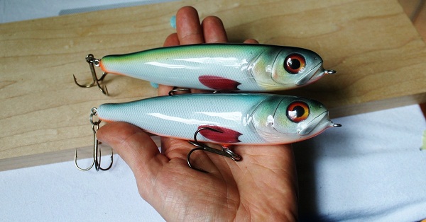 Location: Finland | hey guys i though i'd share some new pictures of a scaled down jerkbait model that i have been pressed to make for a long time already hehe never just got around in making it until now. they are 11.5cm and weigh 60g, trough wired solid resin baits.