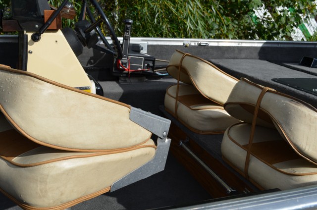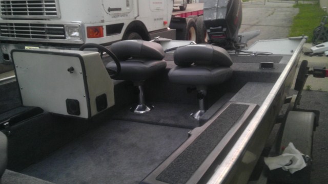 Location: Dane Country | Here is all that has been done. 19 gal. alum fuel Tank,new adjustable pedestals,new style Tuffy seats, new stringers, new floors,deck and carpet. Buffed original paint and decals. I have a Minn-Kota 101 with a 60" shaft I am still debating on installing. This winter I will build a fuse box and rewire the entire boat.