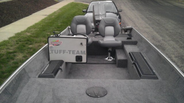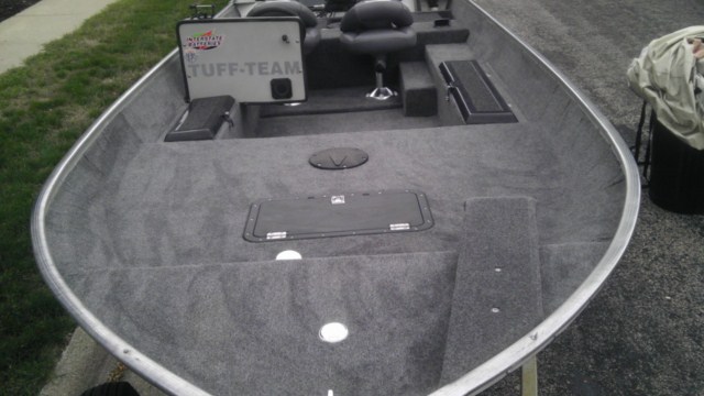 Location: Dane Country | It is my first Tuffy. I was a Ranger guy before. Like I said you could hear the rattle before I mounted them. I put them on the pedestals and have not heard one sound. I am really happy with the way it turned out. Mounting the tank and hoses were a little challenging at first. I paid $1800 for it last fall. The motor was then just serviced for the winter, tuned up and brand new power trim installed. I really enjoy the ride. I need to mount my trolling motor and batteries this winter. I cannot do a hole shot, the boat will stand straight up. LOL Other than that I really enjoy fishing from it. It's a nice poor man's boat. |