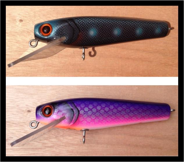 | Awesome looking lures. I know a while back I asked for different angled shots and it seemed to hit a spot that led to a hint of piracy more or less. Don't worry about me. When you are making a new lure, especially a nice one with a very unique body styles like yours, I don't blame you, it happens to everybody, but I won't do it. I admire other people's work like yours when you come up with a unique idea and good paint jobs, and if there's something that makes me puke, it's copying. That's not why I wanted to see different angles, I was just impressed.