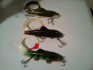 | Three 11"curly sues $17 each shipped. 45 for the lot. Top and bottom are brand new...middle one had tail replaced, but no rips or tears now. Bucktails as lot for $25 shipped. Prefer paypal as payment.