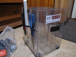 I use this box for baits in the front of my rig. You could easily make modifications to accomplish what your trying to do. Find a holder for the tool or tools you wish to apply to the box. Then simply take electrical tape and wrap around the entire box securing the holders for your tools. I've applied electrical tape around mine just for extra support to avoid cracking from the beating it takes in rough water. Now that you have me thinking i think i'll do the same to mine.