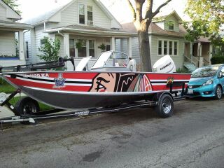 Location: Home of the 2016 World Series Champion Cubs | looks good. $1k? Sounds like a very good price depending on the quality of the vinyl which is directly related the guaranty. I just dropped my boat off today at Xtreme Graphics in Lombard (western suburb of Chicago) to have my boat done too. Im paying $1300 for a 19' alumacraft tournament. My artwork is a personal hi res photo not a cgi. I'll just say its a hockey themed wrap. Ill post pics tues or wed when I pick it up. I did choose the higher grade vinyl which is guaranteed for 7 years. It's bound with the best 3M adhesive available for this application. Price often includes labor to remove old graphics. Lots of old vinyl=extra labor cost.