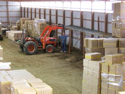Picture of me putting up the pallet racking in my large warehouse (aka the horse barn). Nice thing is, I got to buy a tractor for the new warehouse as my fork truck can't drive on a dirt floor. Makes it nice for winter to scoop snow now