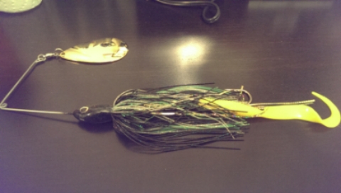Location: Lake "y" cause lake"x" got over fished | Also Wanted to send a special thanks out to you on these two beautiful spinners you built for me. Modified black perch single 24K gold #10 with a yellow trailer tail and I guess I am not sure what you named the other one, But I would call it Flo Pike, has the Silver blade. Both are gorgeous and I am sure that both will get bit. Unfortunately these pics don't do these baits even close to the justice they deserve, lighting is kind of crappy.