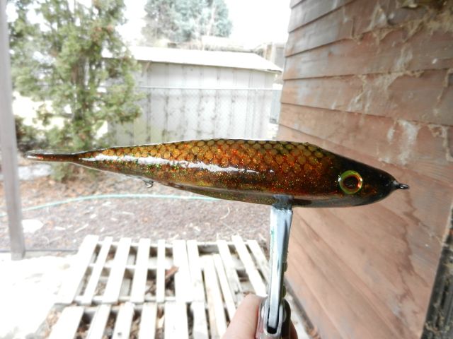 Location: Moses Lake, WA | A Sebile swimmer in simple paint for a friend of mine. Next is the Sea Cow that I attempted to transform with magic into a royal carp. Somehow the spell failed and all I got was a mudpuppy. That's like turning something into a frog when you promised them a prince. Time to return to Hogwarts. Last is another diffusion experiment seeking baby walleye. I might actually fish with this one.