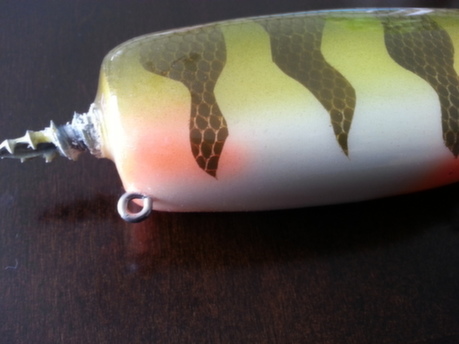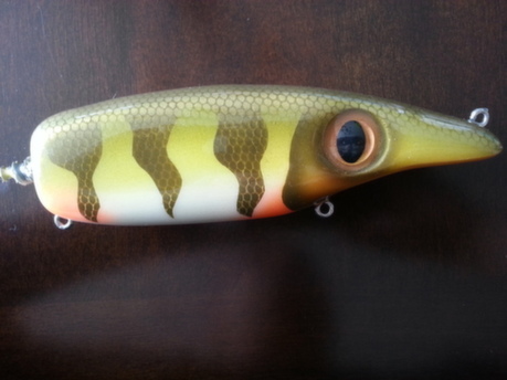 Location: montreal, canada | i have this one painted recently i really like the patern !! it belong to mister Paul fec !! i'm also posting one of my pullbait with a little extra on it !! i added some maraboo to add some action!! it's make the bait glide longer on pull and also sink slower really like the action!!!