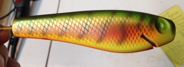 Location: Poynette WI. | sunset perch if you want a name for all generations. If you scroll down the page just far enough to hide the green it fits half the names listed and looks like it's on fire. One of my favorite color combo's all time, Nice looking bait and coming up with names is half the fun!!