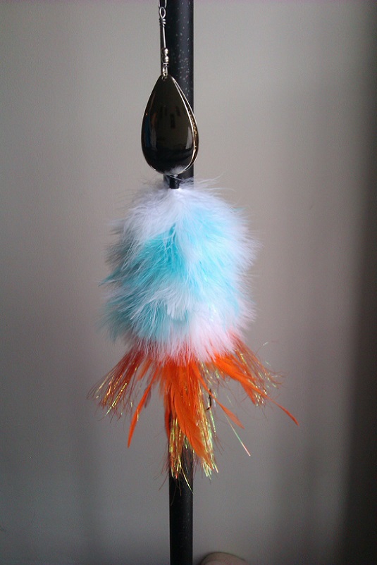 Location: Waconia,MN | Just a couple new bucktails I made. The first one I tried to make after my favorite phantom color iridescent perch with a orange tail. The second is purple with flo yellow.