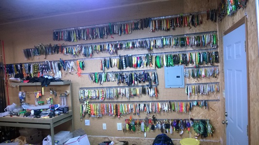| enjoy life. I have near 2,000 baits in my shop we use the ceiling to hang lures. living on st clair its standard practice after 50 years of musky hunting. . |