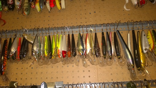 Location: oswego, il | Here are some pics. I still have 9 full 3700 series plano boxes of baits not hung yet. I posted sections of my neek neek, HR, bagley, slammer, tr twitcher and jointed trolling baits. I know, I am working on that bench! Used my smart phone should have used my camera.