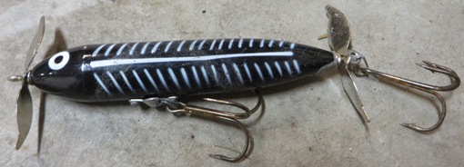 Location: oswego, il | I have plenty of baits that were not made for musky but they are musky lures to me. Upsize the hardware a little and your good to go. The large heddon double prop spook with upsized hooks, props and superglued screw eyes is an excellent musky bait. |