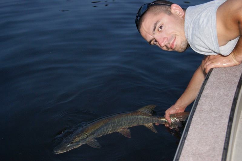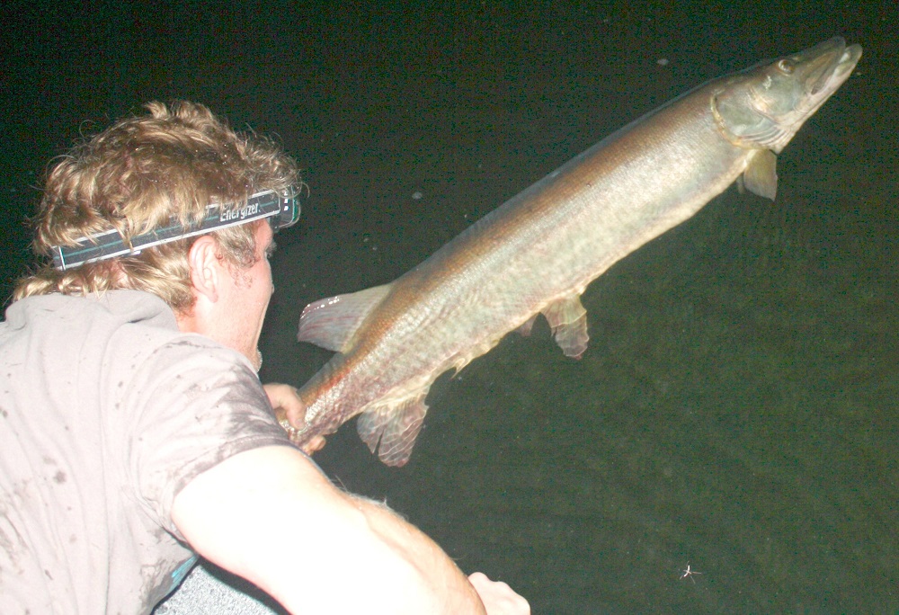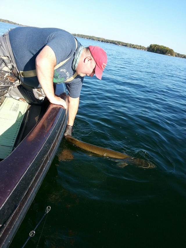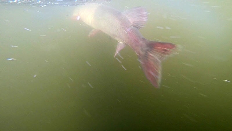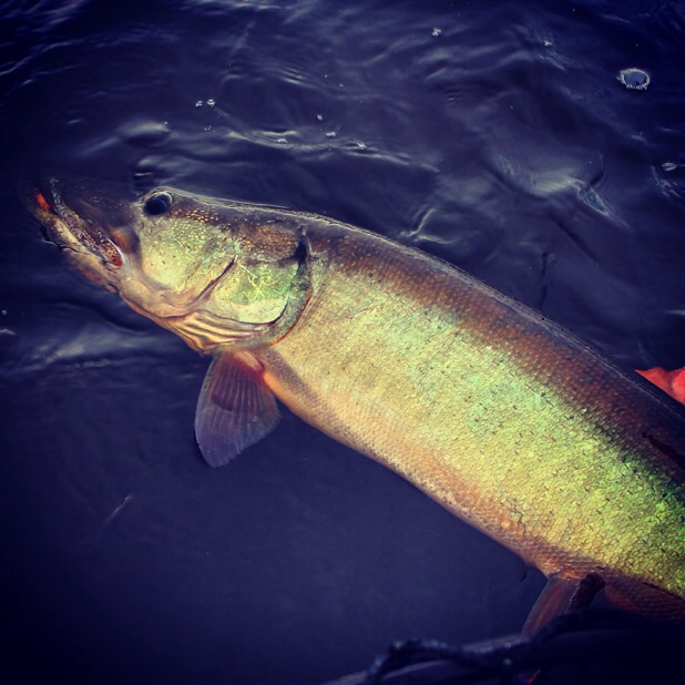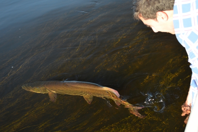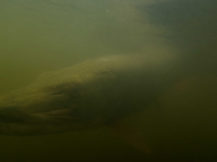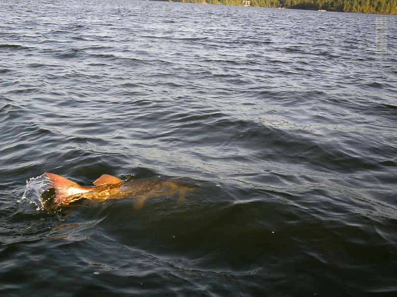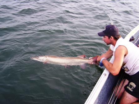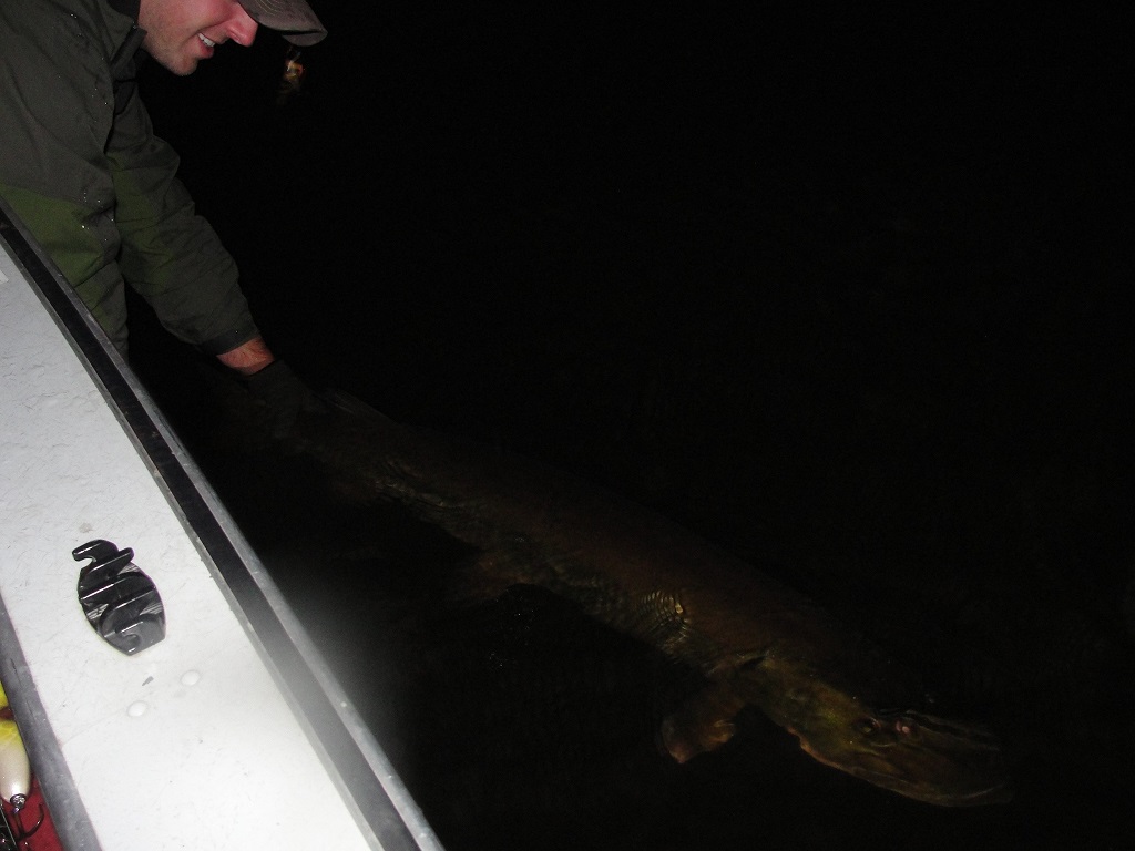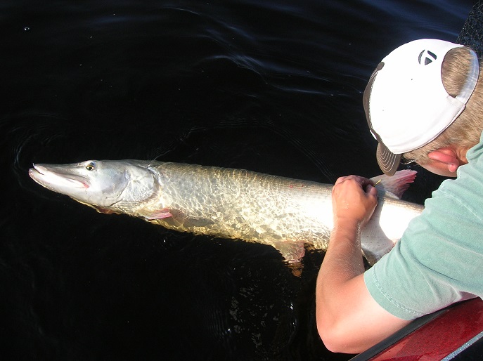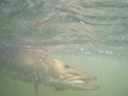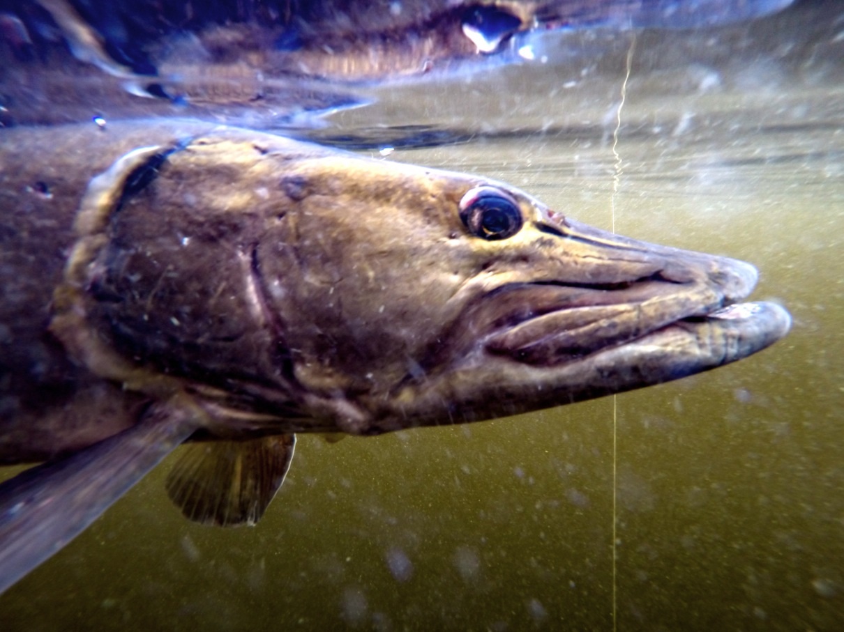 Another personal best fish - this one is a 48" Lake N i p i s s i n g Muskie that my Uncle caught on my boat, his first one. Swimming back to fight another day. Another gopro photo.