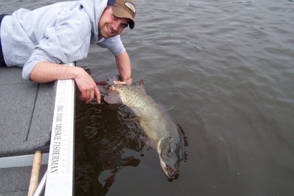 Not a good picture because it was pouring the rain but, this is the fish that changed my way of thinking. My first and only musky that I have ever caught. 35-1/2" caught this year. I am truly addicted now!