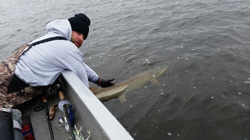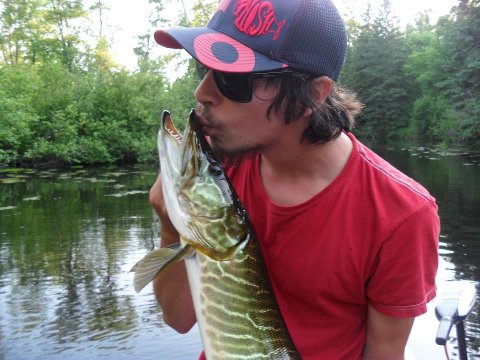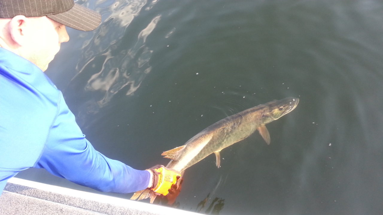Prob not the best pic in the world but I love it anyway because as the fish was getting set in the water he soaked me dad and the camera, Was also caught at the Muskiefirst 2014 Spring bay outing.
