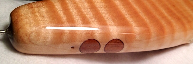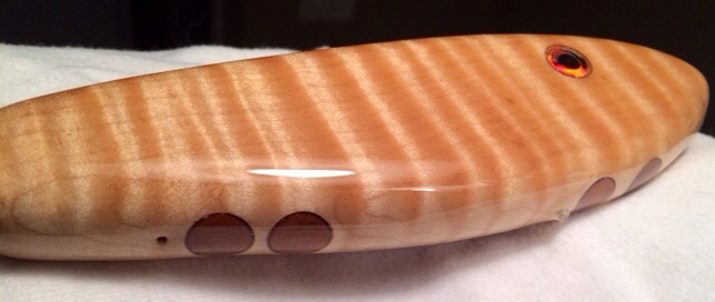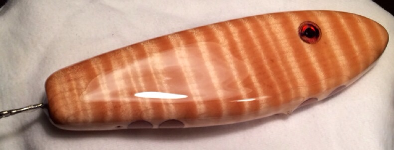 Location: WI | Funny this thread came up. As I said in the earlier post I have been working on these for a few weeks now between painting. I ran across a box of random pieces of wood. Much of which were exotic woods. I thought I would make a few natural wood gliders and topwaters. This glider is Tiger Maple with American Cherry inlayed plugs over the weights to dress it up a bit. I will post more pics tomorrow once these are assembled.