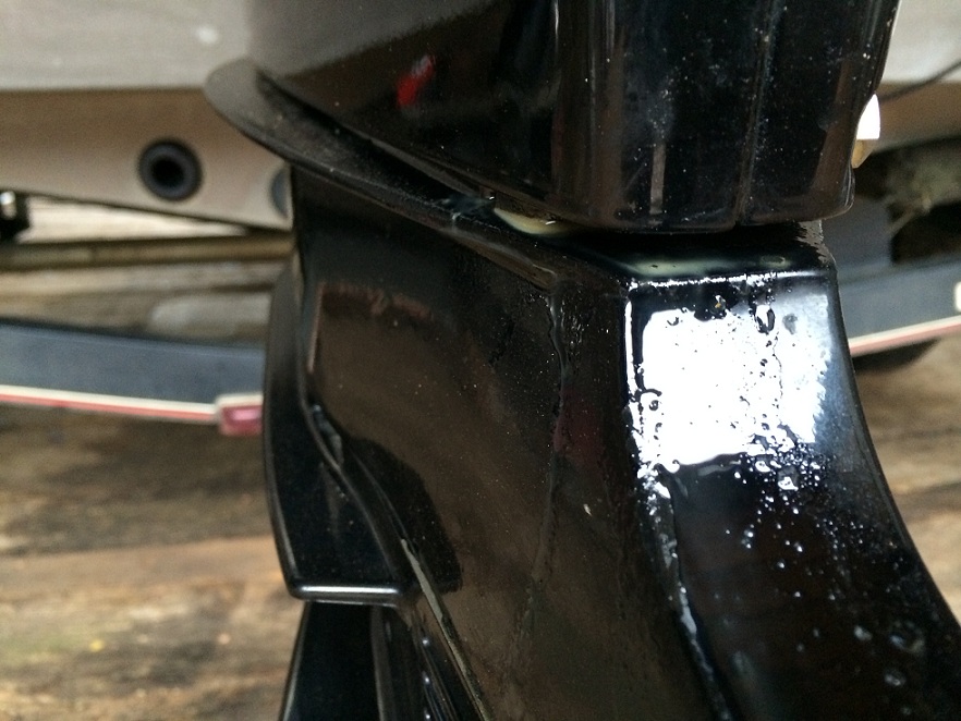 When I changed the gear case lube last fall, it looks a bit milky as they say. Now it apparently is leaking from the motor...