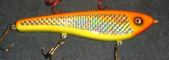 Posts: 680 Location: Muskoka Ontario,Canada | I think that shape has more to do with the actions than the weighting.The panfish shapes such as Crappie or Bluegill turn faster and have less "glide" where the more cigar shaped bodies glide very well. A hybrid shape like my 8" humpback Perch has an action somewhere in the middle of the two. One weighting issue I will comment on is that many other manufaturers so called "custom" baits that I've painted up for customers where not even balanced properly. They all had the weights in one spot in the belly and were obviously not tested before they were originally painted. Balancing the baits front to rear is crucial in a glider as otherwise they will nose dive or rise to the surface when twitched. That's why I charge premium prices and take so long to complete my orders. Gotta make sure they work before worrying about pretty paint. Edited by Musky Snax 11/16/2007 6:43 PM | ||