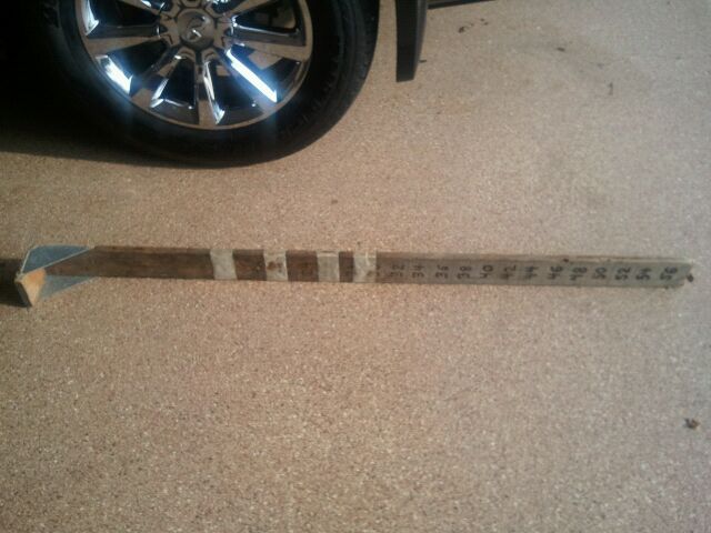 Posts: 531 Location: Hugo, MN | Made mine from pine. 1x8" on the bottom, 1x6" on the back. Drew on a ruler with black sharpie and put at least 6 coats of lacquer over it. It goes up to 57.25", which is the inside width of the lower floor of my boat. It is friction fit and hasn't moved in 5 years. I've touched up the numbers and lines once, due to fading. Probably cost twenty bucks to build. | ||