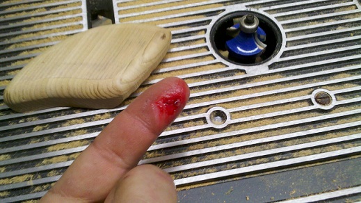 Posts: 1150 | Ouch! I'd have to agree with SolarFall on this one though. I prefer holding the piece so you have a better feel. Using a push stick on a straight edge piece is understandable, but I'd be more afraid with a lure that it would get rocketed out from the table. Just BE CAREFUL. Guys with a lot of experience using a router table can be even more at risk because they tend to become complacent and may no longer appreciate the dangers of the tool after they've used it so many times successfully in the past. Your picture should serve as a little reminder to everyone. | ||