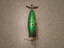 Location: Hastings, mn, 55033 | I have 2 globes and 2 toppers for sale. All baits are hand turned one at a time out of either red or white cedar. Stainless steel .062 main shaft with soldered loops on the ends. "Paper clip" style metal hanger connecting belly hook to thru wire shaft. Brass tubing in belly hook holes and in the head of the globe lures. Top quality primer/paint/epoxy top coat. Glass eyes in the toppers along with brass musky munk blades front and back. VMC cone cut hooks. All baits are signed.