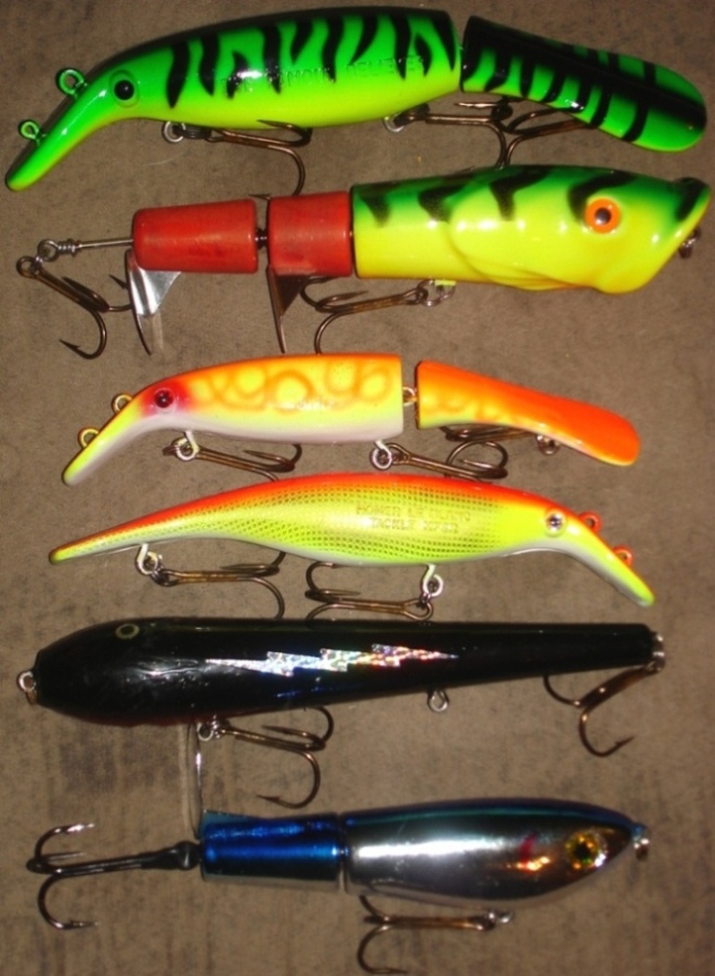 | Here's six great lures that are either doubles or I have something similar to. The top four baits are brand new and have never been used, bottom two are in very good condition. Shipping is $3.50 per lure, will combine on shipping for multiple lures purchased. I will consider trades for Cobbs, Smuttly Dogs, Widowmakers, etc. or other more common lures like Salmo Crankbaits, 7" Molly Baits, or anything else you might have, please PM me and let me know, Thanks.