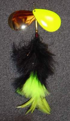Location: The Yahara Chain | New colors are available. I am now offering black, purple, white , orange, chartruese and blue feathers. Blade choices are still nickel, gold, orange , chart, fl. red and fl. green.