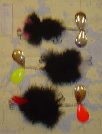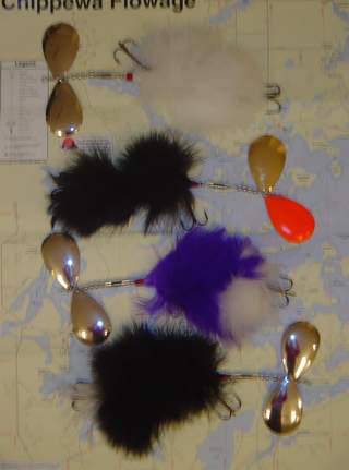 I am now offering black, purple, white , orange, chartruese and blue feathers. Blade choices are still nickel, gold, orange , chart, fl. red and fl. green.