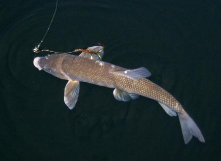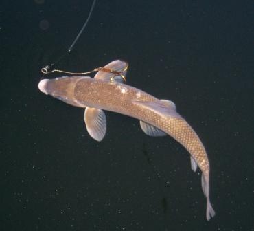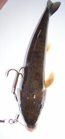 Posts: 3915 | I also make my own, but that dang Stealth Tackle dude keeps popping up as providing excellent products. (Which is sort of a bummer since he took away some of my on-the-side biz of selling flouro leaders!) He must be doing a lot of things right. Dang. Rgardless of the rig you purchase, I think I came up with a killer presentation. Check this out..... Ok, first I have a dedicated sucker rod. It's a 7' Fenwick TechnaAV (AVC70MHMC) with a Ambassadeur 6500C4 loaded with 80# PowerPro. The C4 has the "Baitclicker" feature. The rod is in a DownEaster holder sticking out perpendicular to the boat. The sucker hangs down as I move along weedlines, casting to both the shallow of deep sides of the boat. Ok, we'll go from the rod tip to the sucker..... The line hangs straight down to the leader/rig. The line is tied to a Strigease snap which is snapped to the "top eye" of a heavy swivel. The "bottom eye" of the swivel has two things attached to it. First, there's a rubberband that holds a bell sinker, the purpose of the weight of that sinker is to ensure the line hangs STRAIGHT down from the rod tip. The rubber band allows me to change weights as conditions warrant, I want the lightest possible to make the line hang straight down. The faster my boat is moving, mostly due to wind conditions, the heavier the sinker. That "botton eye" of the swivel also holds the rig. The rig is made of 60# Sevenstrand, double crimped to that eye. There's about 5' of Sevenstrand from the swivel to a single hook that is hooked through the top and front of the sucker's mouth. 1' in front of the sucker is a dime sized chartruese blade held by a clevis. The clevis is held in place by a red bead and then a crimp. Now to the hooks.....I don't hook both lips, just thru the top, with a single hook. That single hook is a beast, a short-shanked shark hook I order from shops in Florida. The hook is held very tightly against the Sevenstrand by a double shrink rap, and I place two 1/4"X1/4" pieces of bike innertube on either side of the sucker's lip. The Seventrand "tag" hold two more hooks, both are short shank 2/0 Mustad round bends that are hooked first on the bottom of the sucker near the front lower "fin" and the second is hooked just in front of the tail on the top. Both trebles are as sharp as I can make them and I use pliars to smash one barb down a bit to minimize trauma to the sucker. I'm very careful to not damage the sucker's spine with that rear treble. That $6.00 sucker has to swim for a while. So, in summary, the rod is straight out from the boat, the line is straight down from the rod tip, and the sucker is on a 5' wire leader that, as I move along, is at a 90* angle from the swivel/sinker. The small colorado blade slowly spins around in front the the sucker. The sucker swims from side to side, left right left right, a pattern maybe 3' wide as I drift along. A perfect setup has the sucker swimming along, snake-like, with minimal trauma, back near the stern of the boat. I'm casting all the time both to the break on one side of the boat and and to the deep water on the other side of the boat. I watch the sucker all the time, and often gently lift it up toward the surface if it's about to run into some weeds. (Getting your sucker tangled in weeds is downtime. Downtime sucks, avoid it.) The C4 has a"baitclicker". Once my sucker is running right, I engage the baitclicker and press the spool button to "freespool." If a fish grabs the sucker it can run until I'm ready to lift the rod, reel down tight and set the hook like I'm Virgil Ward trying to cross the eyes of a 15# bass. But note!!!... A musky will often smack the $hit out the sucker, let go it and then come back again to really grab it and run. That's why you gotta watch the sucker all the time. And like pike on a tip-up, don't set the hook until after the strike and until the fish is really moving away with the sucker. I once had two upper 30"s muskies nosing a 16" sucker in an ultra-clear lake. They followed along for 30 yards or so before they both ghosted away; neither hit the bait. The sucker died of heart failure. Another time, same lake, a nice musky came from out of nowhere, WHAM!!! and tore the 16" sucker in half with its first strike. I was looking down at a 16" sucker that was now in two pieces, when the musky again flashed in and grabbed the top half of the sucker. I was blown away by the fury, and missed the second strike. So, in conclusion, I drag suckers while I cast structure. Either follows or non-follows can hit the sucker. | ||