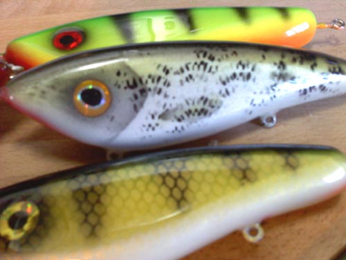 | I played around with a new walleye that I'm really happy with, I added some yellow spots and a couple new Jr Modivators. Attachments ---------------- 1010011343.jpg (57KB - 180 downloads) 1010011344.jpg (42KB - 196 downloads) 1010011344a.jpg (50KB - 192 downloads) 1010011406.jpg (55KB - 192 downloads) | |||