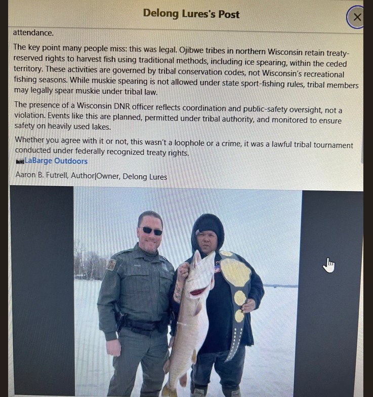 TheShow - 2/5/2026 2:20 PM The other thing to keep in mind here is that these winter speared fish do NOT count towards the tribal spring harvest quota (Prime spearing season for walleye and musky). During the spring spear, lakes have quotas for both species, and the tribes are issued the an allotment of permits, per specie, per lake. The permits factor in an appropriate level of harvest for the lake to allow sustainability. Winter spearing goes unreported and undocumented. When you question a DNR or GLIFWC warden on this loophole, there's no explanation. It's just a definite flaw in the system. I didn't know they didn't document like they do spring spearing. That is strange. | |||