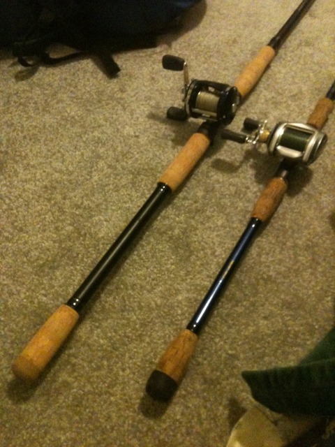 Posts: 4053 Location: Land of the Musky | I have a few prototypes but they are not perfect yet so the weight is still up in the air. Here is a good comparison thought. The Legend Big Nasty 9' H with split grip and is rated for lures 2-6oz rod weighs in at 10.7oz. My 9' MH split grip telescopic that is rated for lures 1-6oz is 10.7oz in weight. For my full grip MH vs the Big Nasty Full grip I lose the battle. The St. Croix is 11.3oz and my MH 9' full grip is 12.7oz. In my defense though my cork is fatter With all of this said, If I had the money I would buy a St. Croix in a second. They make a premium rod, great action, great company/brand and if you want the Ferrari of rods they have it. I think I have done alright though with my rods. James | ||
