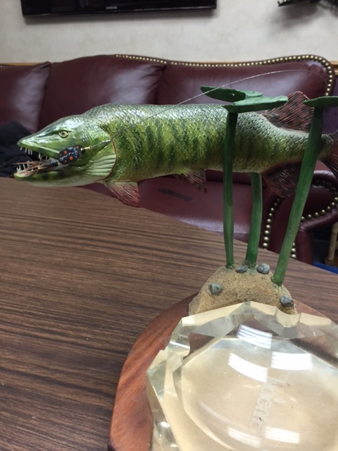 Posts: 2754 Location: Mauston, Wisconsin | No- Its at the Radisson Hotel Resturant in LaCrosse WI. We were there for Easter Brunch..very cool piece of art! http://www.threeriverslodge.com/ I would like to see some of the other muskie art works you guys have came across in your travels. Here's another one large wood carving here - our 23rd anniversary dinner - 3-27-2015. http://www.carlsonsrusticridge.com/ Seems like I'm seeing big muskies everywhere I go and season is still closed here... Have fun! Al Attachments ---------------- Quincy-20150327-00469.jpg (59KB - 431 downloads) | ||