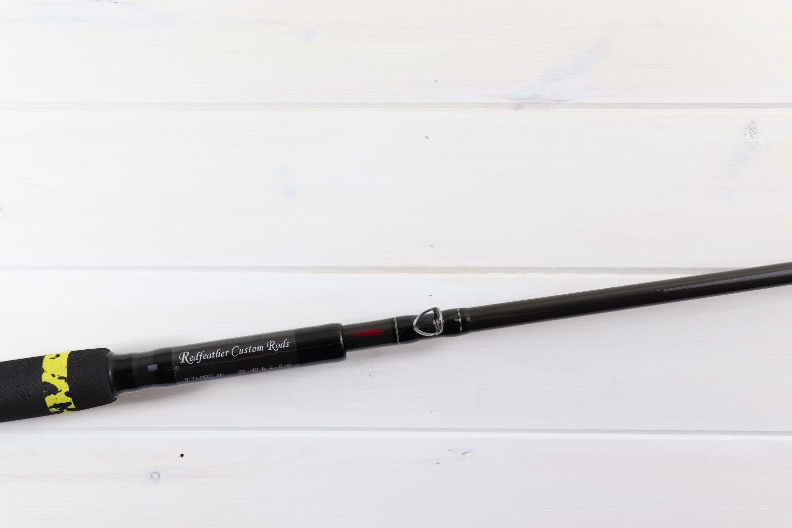 Location: Western U.P. | For sale is a Redfeather Custom Rods 9' Tackle Industries TI-PRO XH Telescopic rated for 2-8 oz lures. I’m listing this as used, but it is in new condition, with no marks, or signs of use on the rod. It is 9’ extended, and 7’6” when collapsed. The blank was hand polished prior to the build, for a better than factory finish, so anything unusual that you may see on it in the pics are lighting reflections in the finish. The EVA full rear grip is 17” long with the butt cap, and the EVA foregrip is 4.5” long. The reel seat is a Fuji Standard Trigger, and the guides are American Tackle Polished TiForged Double Foot Stainless frame, with Nanolite rings. There is a matching AmTac tip, and hook keeper. All of the thread wraps are done in black with individual yellow trim bands. My trademark Red Feather is inlayed in front of the first guide. A great all around rod.