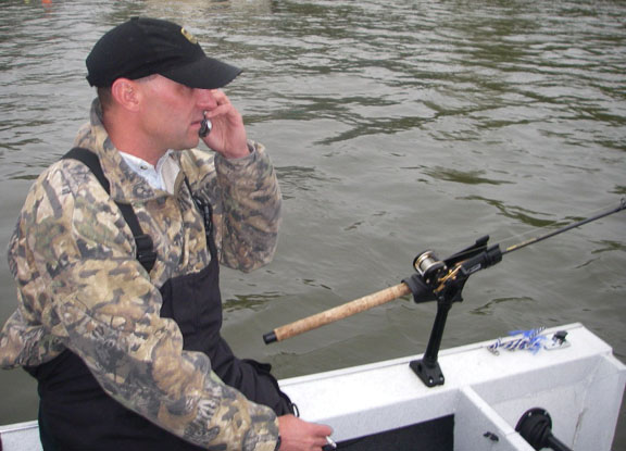 Posts: 1504 Location: Oregon | Matt, You shouldn't need any safety straps with a good rod holder. I use Scottys on my boat and have never seen a rod even come close to coming out with salmon or sturgeon. We will often get slams so hard that it's difficult to get the rod out of the holder! If you like to keep the rods low...close to the water I mean, make sure that the rod tip isn't pointed at where the line is entering the water........this is asking for the rod to get yanked from the holder! See the first pic with buddy on the phone........the rod can get yanked out in this position. This buddy of mine likes the rod that way and so he always sits right next to the rod so he can grab it if it goes. If the rods are at the back of the boat near the motor, it's better if the rod tip is up in the air a bit but not sky high! I like the rod tip in the air just a bit with the rod off to one side of where the line enters the water (see pic #2). In this way when the fish takes the rod bends instead of wanting to jump from the holder. If your rod holders are along the gunnels at a right angle to the boat you don't have much to worry about it......just get the rod and reel down in the holders and they won't go anywhere. jed v. Edited by RiverMan 7/28/2006 8:58 AM Attachments ---------------- IMGP0313.JPG (62KB - 255 downloads) IMGP0299.JPG (95KB - 229 downloads) chftrip1in05.jpg (38KB - 239 downloads) | ||