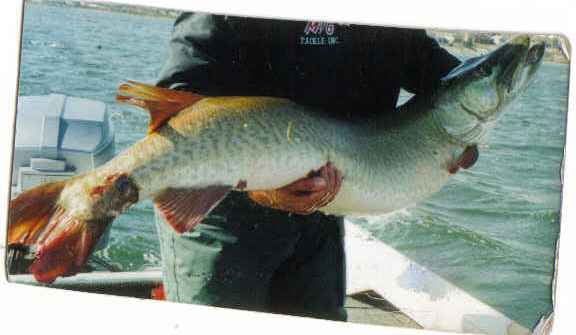 | Here's a Wisconsin strain stocked Iowa Muskie. 53 incher. The best research I could come up with was it's year class was stocked from Wisconsin's Lake McKenzie stripping. Back in the eighties McKenzie was known for football shaped fish. The genetics are still here as have also caught McKenzie fish with similar proportions.(not as big as 53 however) Colors are very similar also. Edited by muskiemachinery 10/19/2004 7:07 AM Attachments ---------------- muskie1.jpg (18KB - 457 downloads) | |||