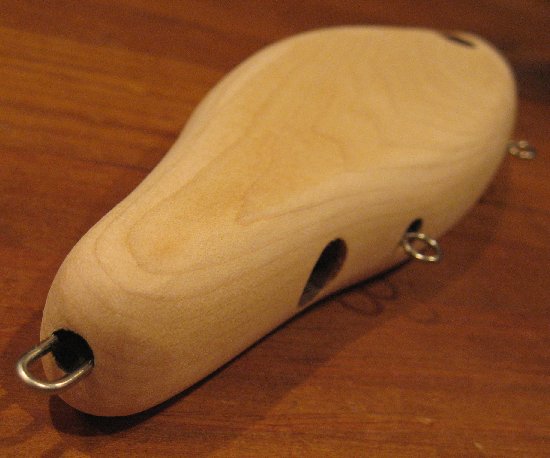 Posts: 388 | tmusky, I have done this blank style with dual and single weight placements and found the action to be quite simialr. Maybe a slightly better glide on the dual weights but this is kind of splitting hairs. The main reason I have settled on dual weights is the ability to fine tune how the lure sits in the water relative to the horizon. With a single weight it is very critical to find the right spot for the lead to go so that the lure sits right. Every piece of wood is different so it is nice to have the ability to fine tune if needed. With dual weights, you can drill out a small amount of lead on one side or the other to adjust. This is more critical for gliders. On twitch lures, I tend to put the weight forward of the "center of bouyancy" so that it backs away from weeds or obsticals when paused. Haven't made a topwater before so I don't know what works best. Edited by Yake Bait 3/9/2009 10:01 PM | ||