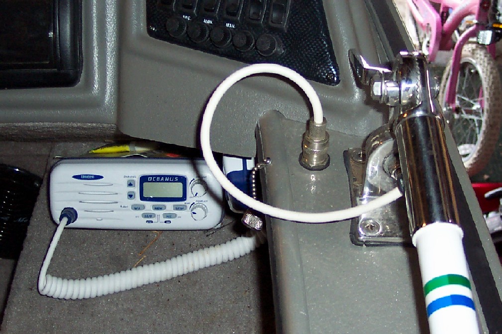 Posts: 5874 | Sputter, I usually just put mine down along the gunnels. I have mine mounted next to the console, and the tip just reaches the back of the boat. I also configured mine with a bulkhead connector, located next to the mount. I shortened the lead to allow for moving the antenna up and down, plus a little more in case I ever have to redo the connector. I bought a 3' premade cable, and ran this from the underside of the bulkhead to the radio. If and whenever I want to remove the antenna, all I do is remove the connector from the bulkhead, and unscrew the antenna from the base. The bulkhead comes with a cap for protection. Works great. I will try to get a pic and post. Hopefully this weekend, as the boat comes out of storage. Edited by Shep 3/19/2003 10:08 AM | ||