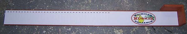 Posts: 2024 | I did what Lance suggested and bought a 72" metal ruler from Menard's. Heavy oak for the base (or whatever wood you like) with scrap pieces of whatever was laying around for the bump part, centered the ruler on the board and screwed it down, took some thin pieces of balsa and laid them around the ruler to make it flush, hammered in some wood nails for the balsa, coated the wood with a dark stain, then gave the entire thing (wood + ruler) several coats of polyurethane. Awesome winter project and the finished product turned out much better than I expected. Just make sure your boat has room for it. Ours lays down perfectly next to the passenger seat in the boat parallel with the gunwales. | ||