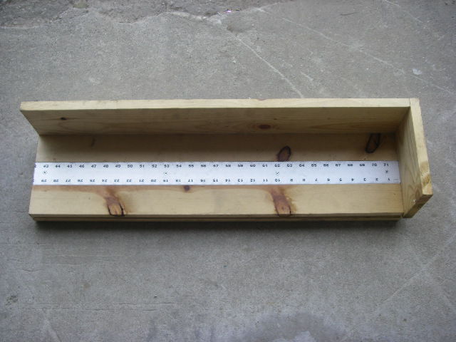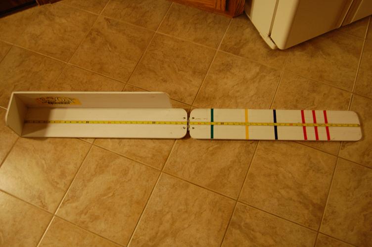 Posts: 208 Location: Sun Prairie, WI | Made mine out of 1x6 and 1x8 used the 1x6 for the sides, had a friend place a groove in the center for a 72" ruler that I cut down to 60 and screwed to the board, cut it at 30 and hinged it on the back so when open there is no gap in the ruler. Works great it is a tad on the heavy side. I have about $30 invested. Sealed it with Thompson water sealer, no stain, too lazy for that. Attachments ---------------- IMGP1046.JPG (151KB - 1254 downloads) IMGP1047.JPG (160KB - 2497 downloads) IMGP1048.JPG (144KB - 1017 downloads) IMGP1049.JPG (156KB - 879 downloads) | ||