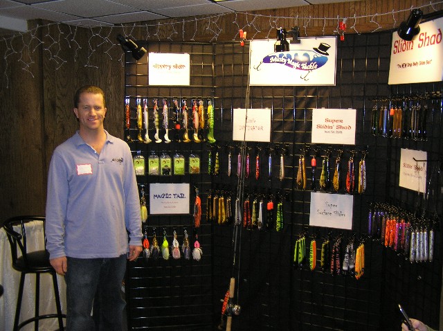 | Doug Kloet of Musky Magic. the Slippery Slider looked sweet in the pool, rubber tail didn't deaden the action. apparently i was the first person to buy one of his baits at the show (a mini Instigator)...i still think i should have won some kind of prize for that... Attachments ---------------- LXShow 010.jpg (111KB - 163 downloads) | ||||||
