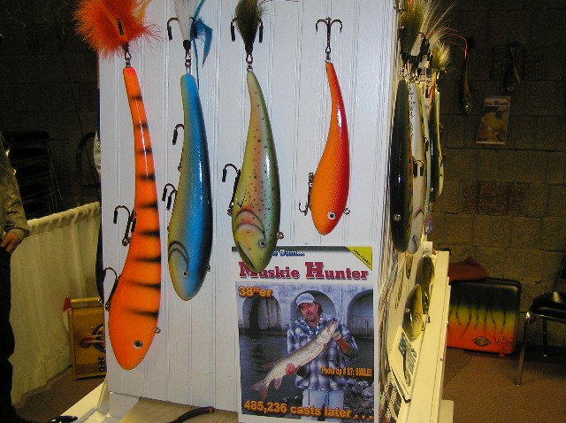 | there were a number of other booths that i didn't manage to get pictures from...maybe someone who visits them on Saturday can fill in some of the blanks. - Nimmer Swimmer - Paul Hartman with baits and MN tourney trail info - Crazy Crankbaits - a booth with Grandmas and Reef Hawgs - Brite Z's bucktails, has some nice weighted jerkbait leaders - a number of resorts - hosts: God's Country Muskies Inc, holding a raffle for a Triton boat - Hawgseekers tackle - one of this year's hottest baits! - a booth with very cool muskie and outdoors themed metalwork signs, will do special orders Edited by lambeau 2/4/2006 1:21 AM | ||||||