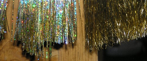 Posts: 388 | Found an unbelievable deal on flashabou last night in the Christmas section at WalMart. They sell tinsel called 500 CT ICICLE which is saltwater cut holographic flashabout in bulk form. The package contains 500 strands that are 18" long. The silver, gold, and pearl are just as you would buy from any other source for a fraction of the cost. The colored strands unfortunately are a different color on each side and you wil find combinations of fushia, green, red, gold, and blue. Some of the strips are the same color on each side but you will have to do some sorting of the material by separating the colors which are organized in bands. Each package costs $1.50. Merry Christmas! | ||