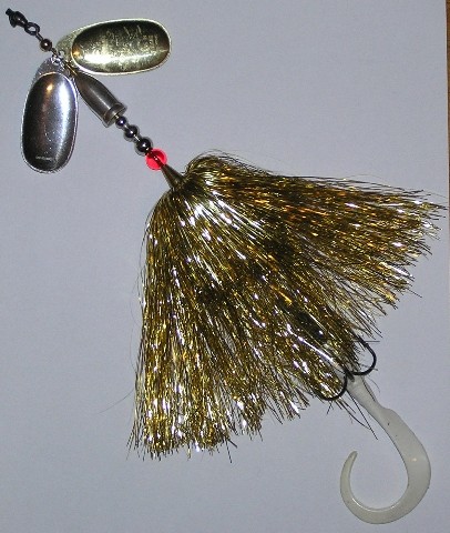 Posts: 388 | Just made a new double 13 blade bucktail with the Walmart Christmas tinsel. I have another that I have been using quite a bit this spring and it holds up pretty well. Once in awhile a strand will fall off if the lure gets fouled on a cast. Looks great in the water. Strands are 18" long and appx 1/16" wide. 500 strands per bundle. Bought mine for $0.97 per bundle on sale after Christmas two years ago. If you get the colored bundles, you will need to separate the groups of strands that are the same color. Not as tedious as it sounds because the groups can be separated on the top of the bundle which is not cut into strands, just snip at the transition. Some of the colors are different on each side. For example, the lure that you see here is made up of strands that are gold on one side, red on the other. Edited by Yake Bait 6/28/2009 9:31 AM Attachments ---------------- IMG_1438b.JPG (99KB - 129 downloads) | ||